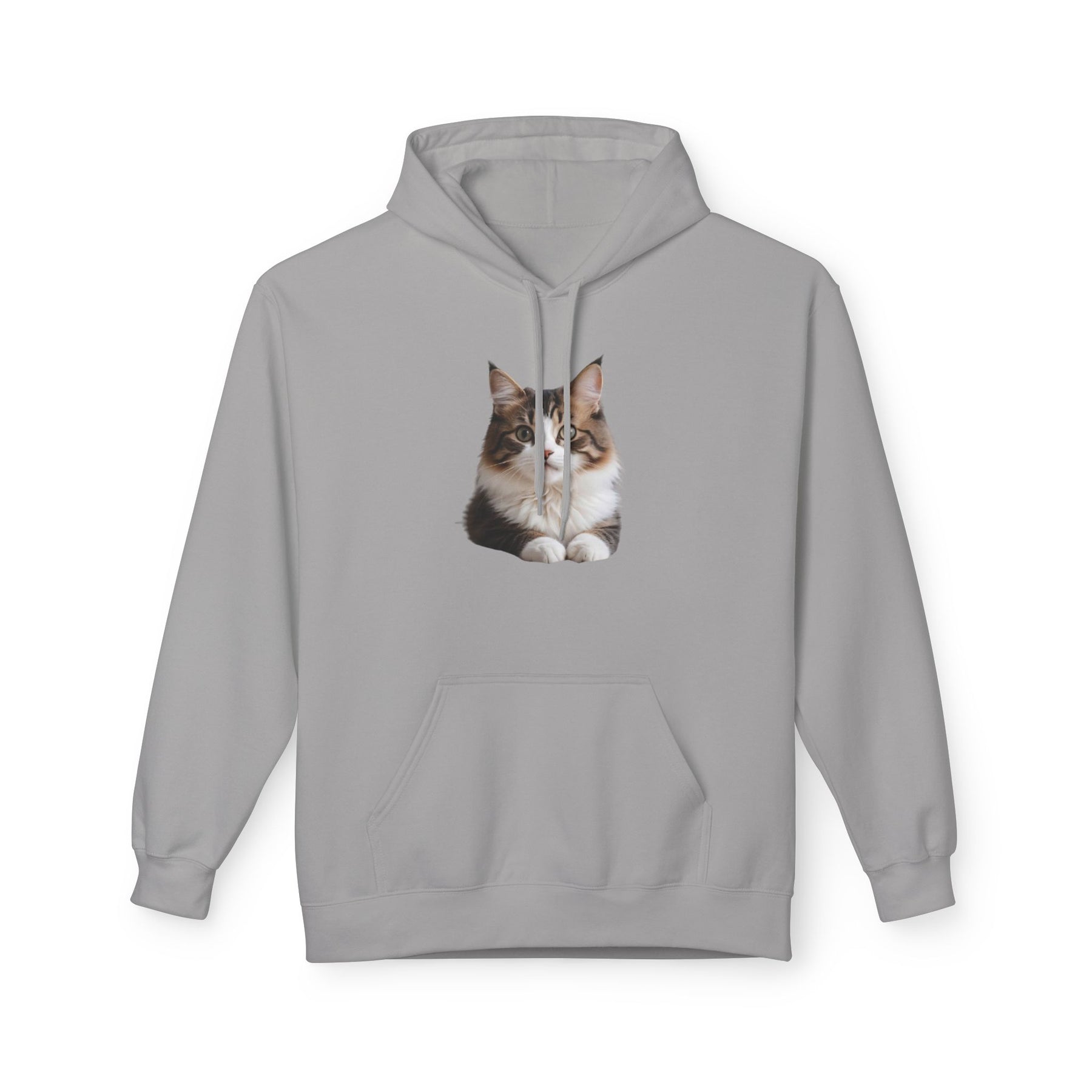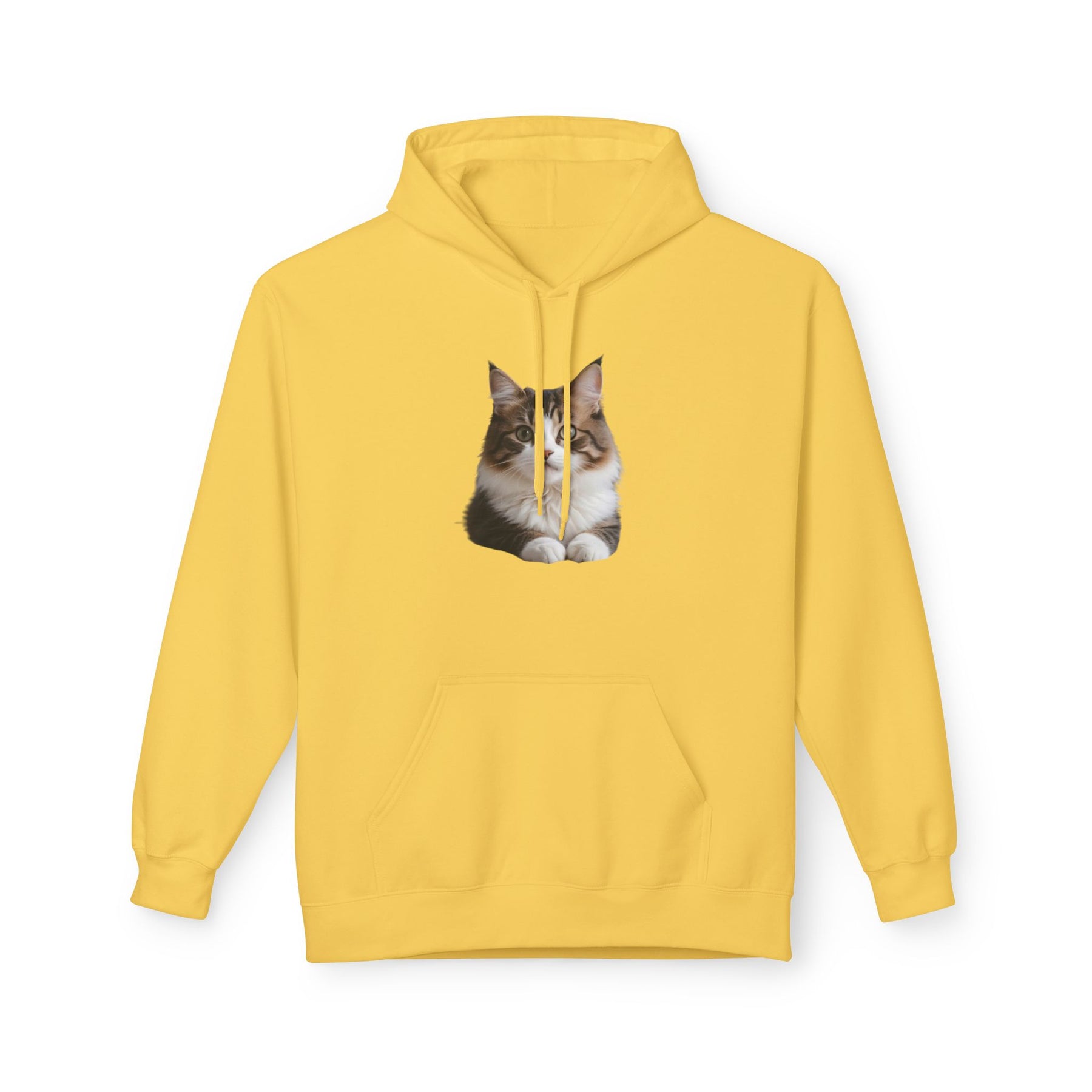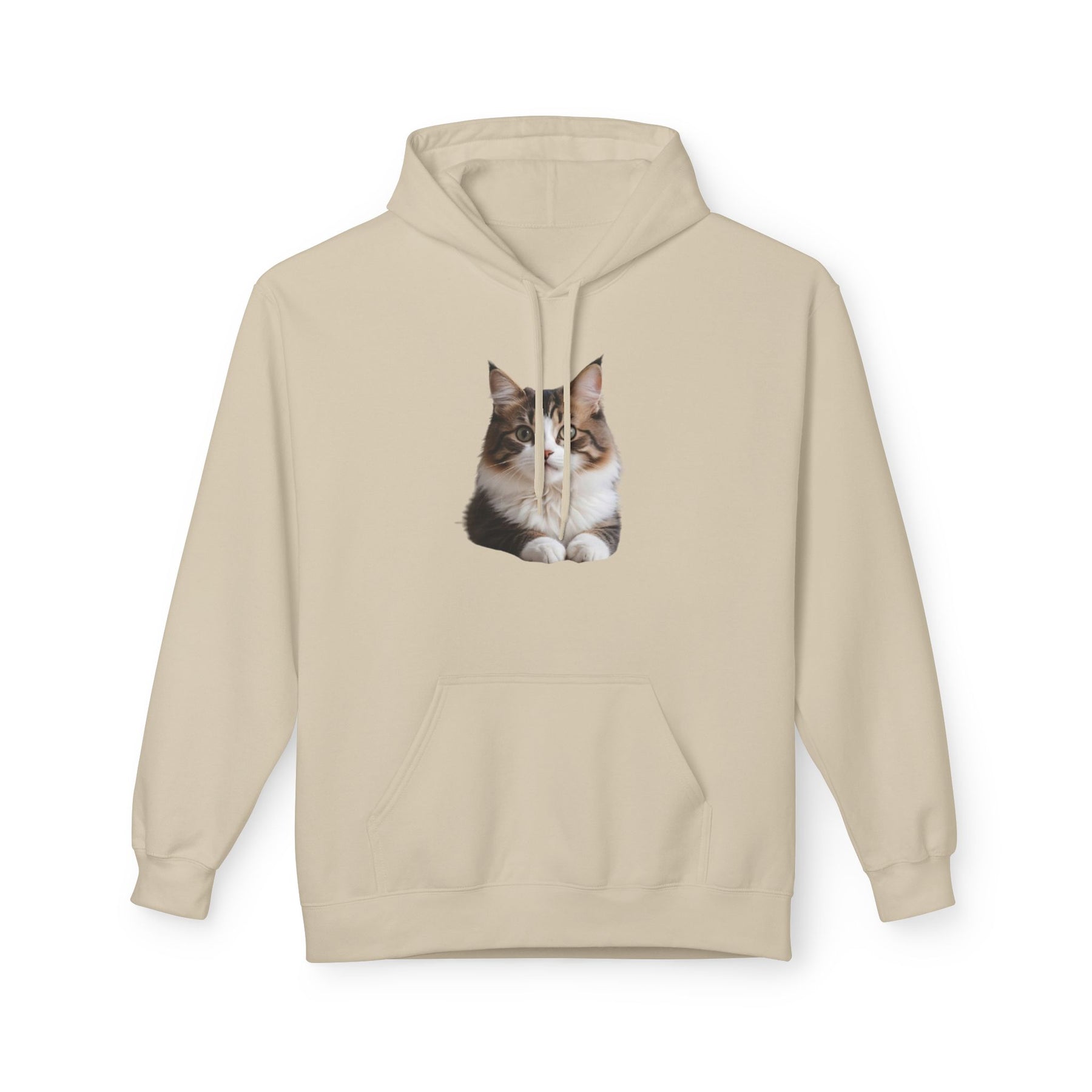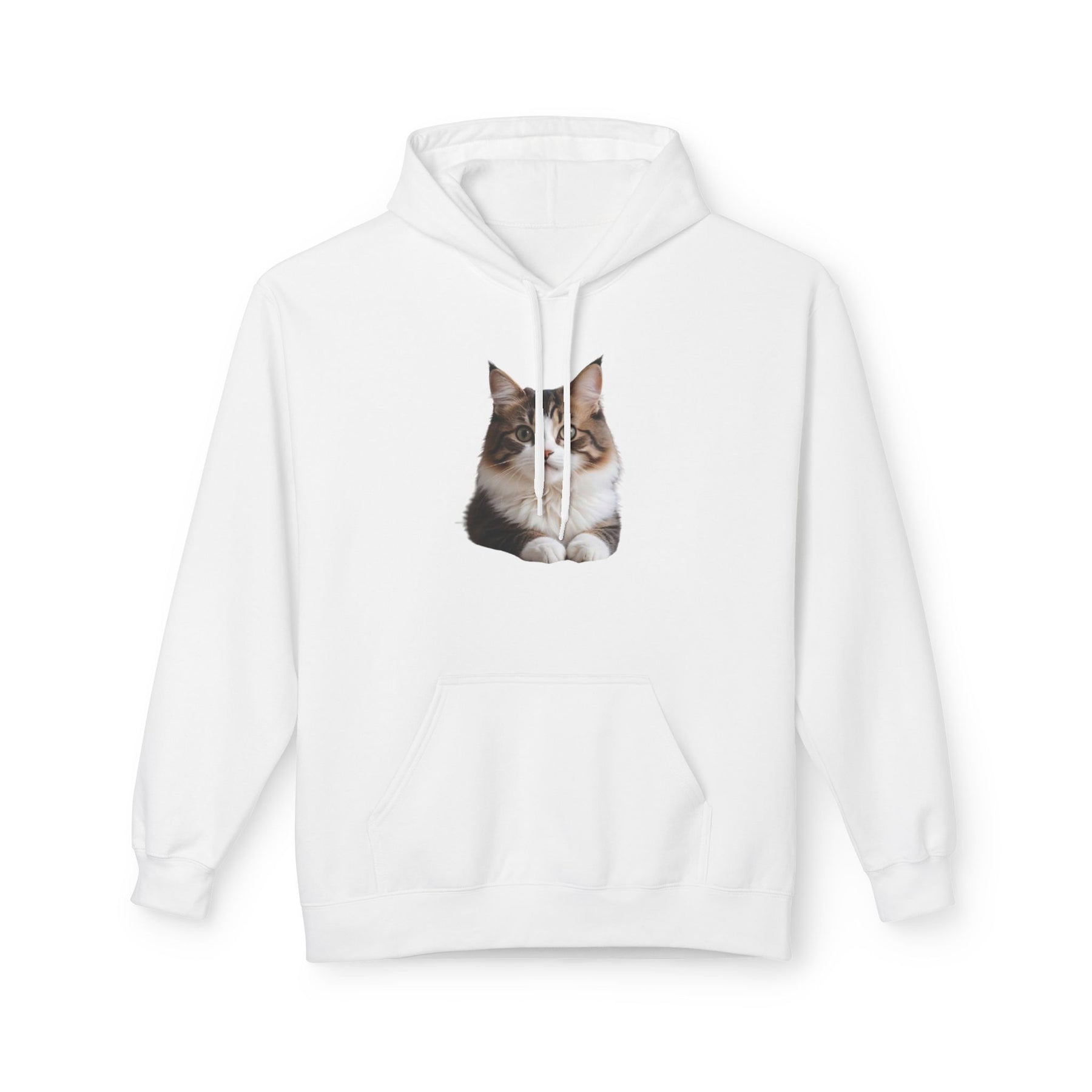 This midweight fleece hoodie brings quiet comfort and a gentle, homey charm to your everyday wardrobe. The soft cotton-blend fabric and relaxed dropped-shoulder silhouette cradle you in warmth while the subtle cat portrait on the chest adds a touch of personality without shouting. Wear it for slow mornings with coffee, cozy evenings on the couch, or when you need a familiar layer for running errands. Thoughtful details — a color-matched lined hood, roomy pouch pocket, and tear-away label — make it feel lived-in from the first wear. Ethically made and OEKO-TEX certified, it’s a comfortable, responsible choice for anyone who wants softness and simple style paired with conscious production.