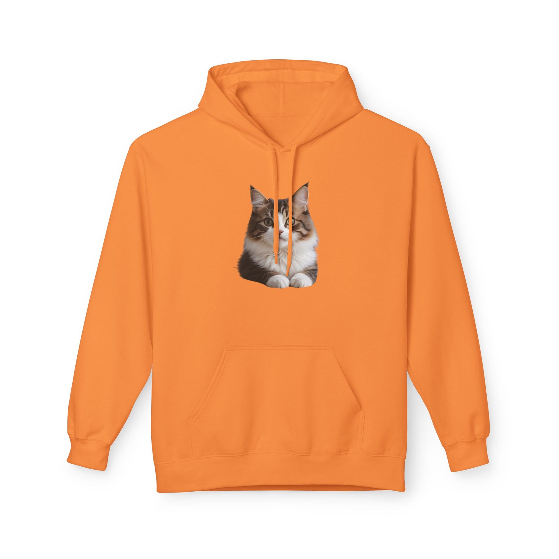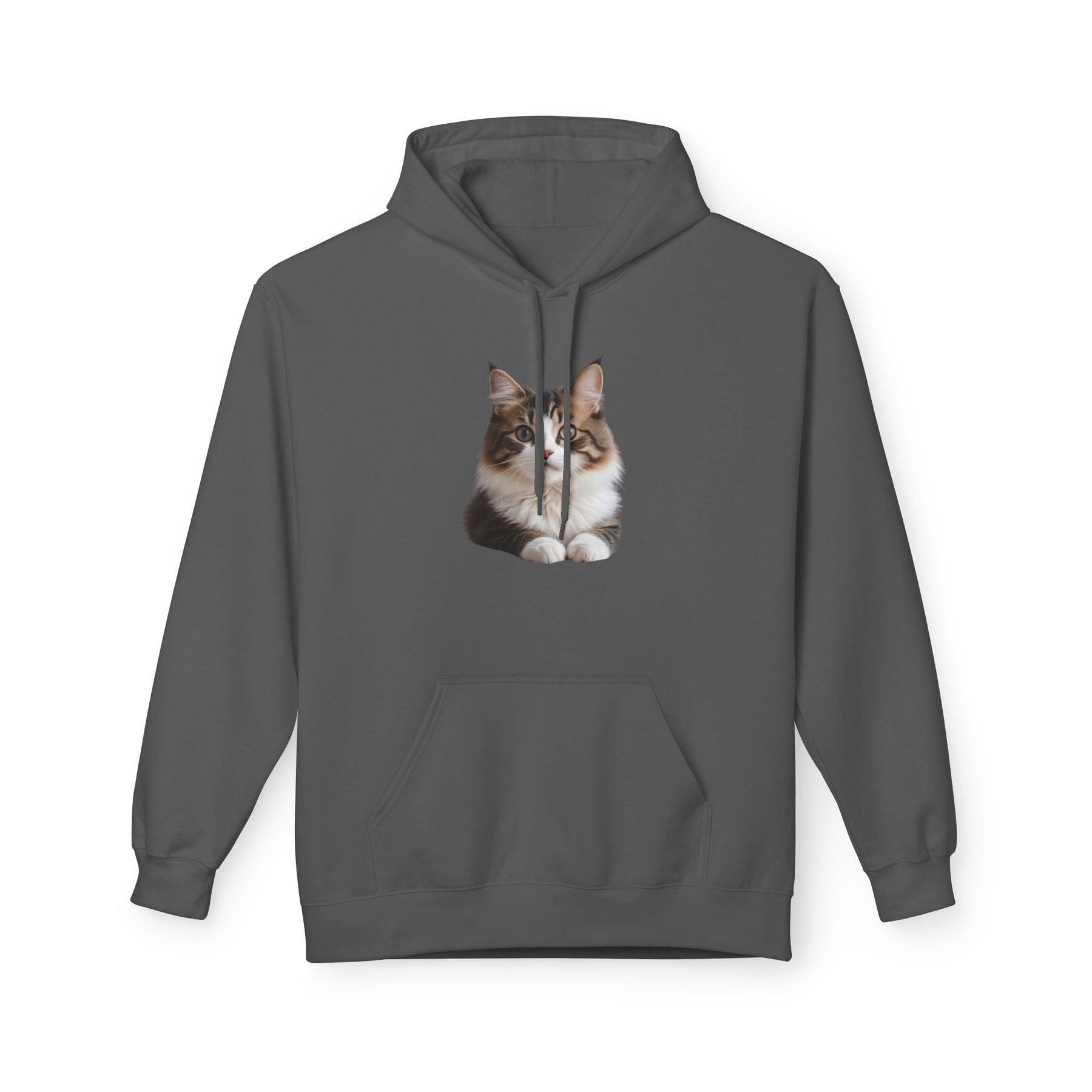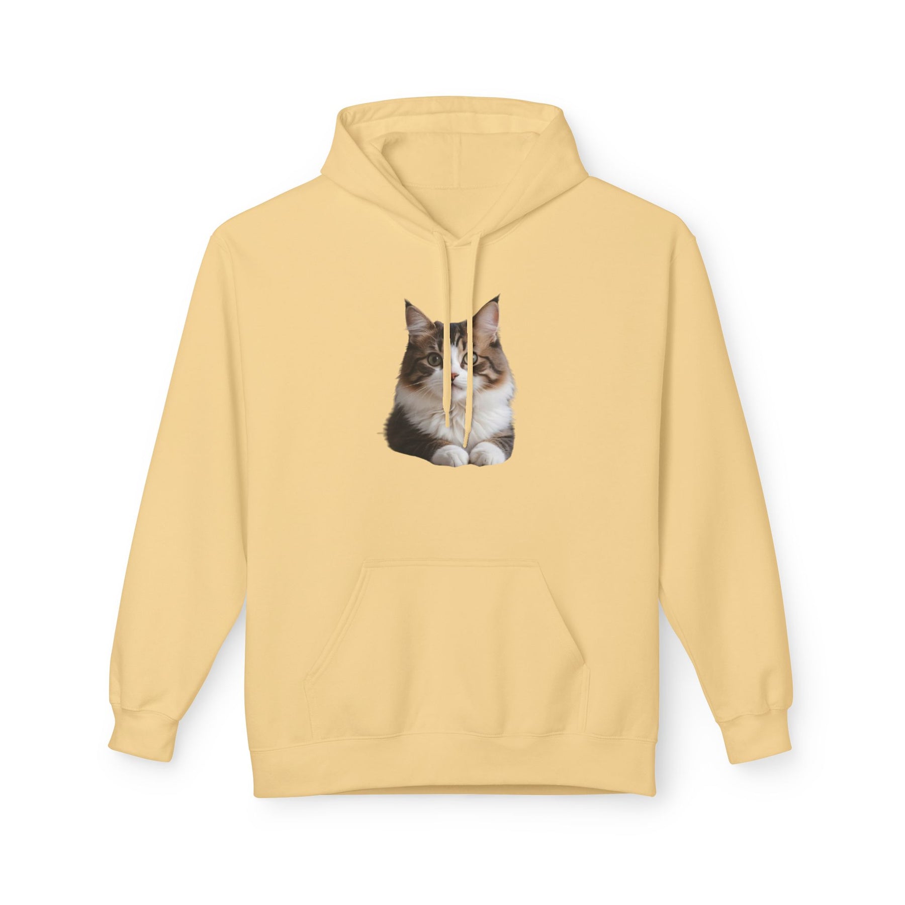 This midweight fleece hoodie brings quiet comfort and a gentle, homey charm to your everyday wardrobe. The soft cotton-blend fabric and relaxed dropped-shoulder silhouette cradle you in warmth while the subtle cat portrait on the chest adds a touch of personality without shouting. Wear it for slow mornings with coffee, cozy evenings on the couch, or when you need a familiar layer for running errands. Thoughtful details — a color-matched lined hood, roomy pouch pocket, and tear-away label — make it feel lived-in from the first wear. Ethically made and OEKO-TEX certified, it’s a comfortable, responsible choice for anyone who wants softness and simple style paired with conscious production.