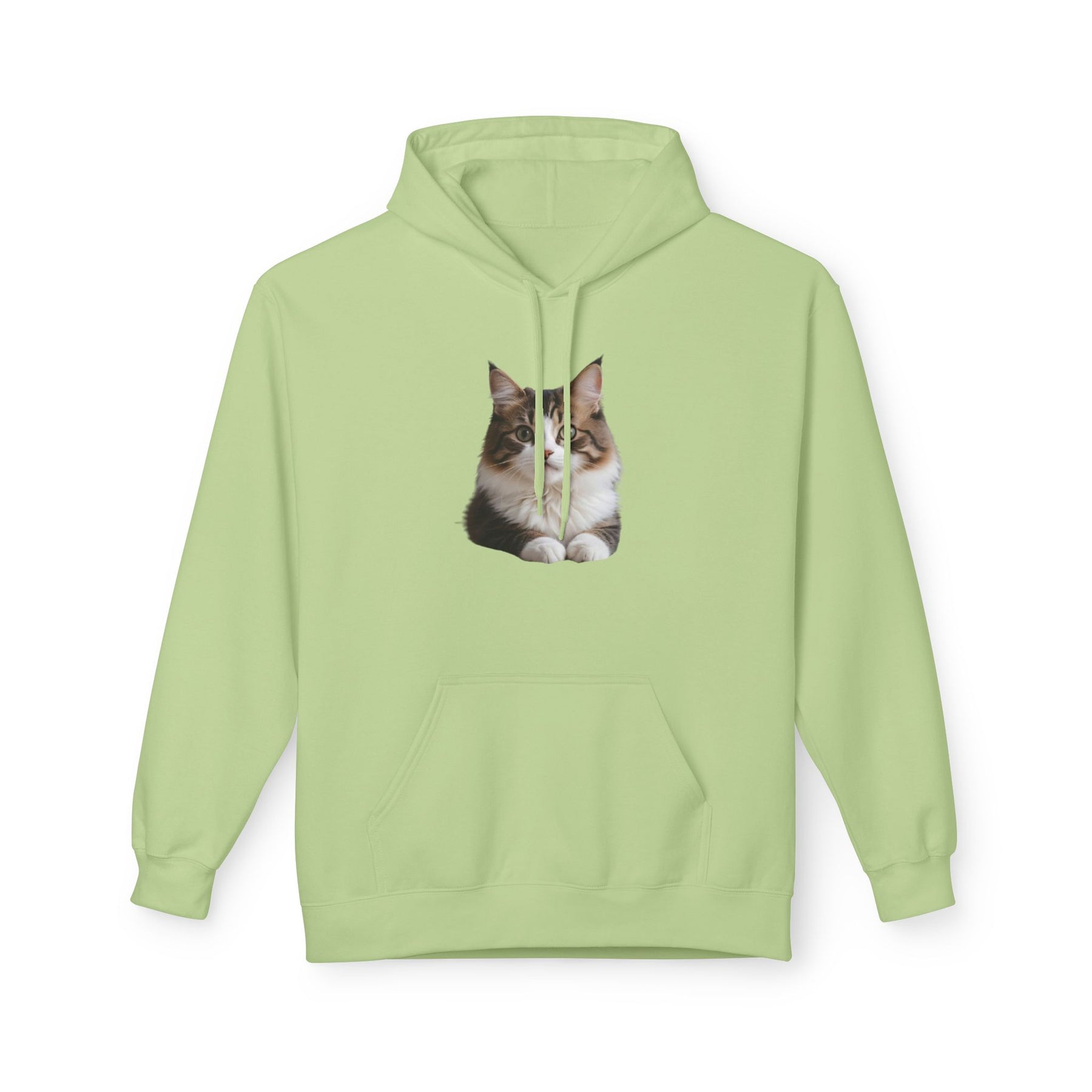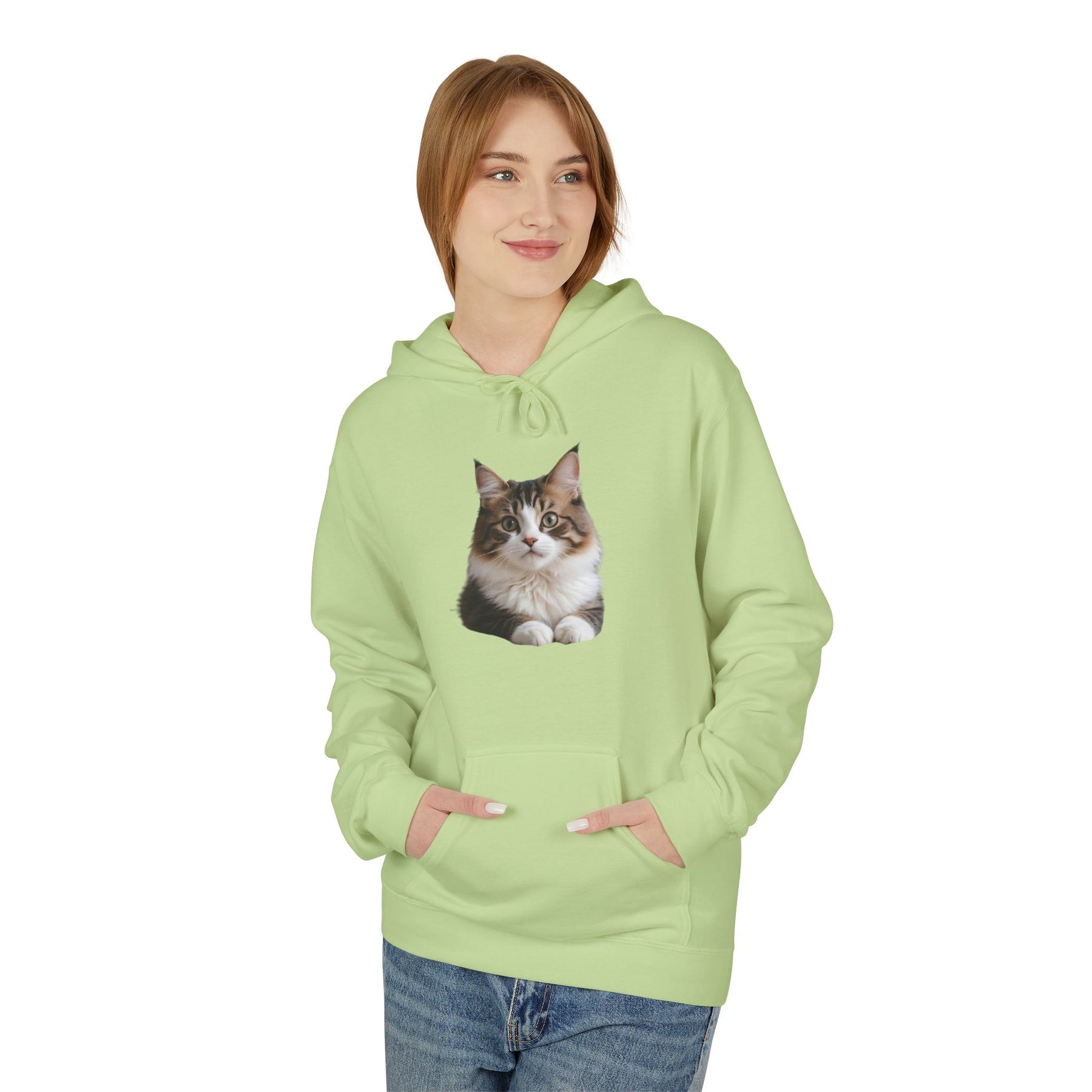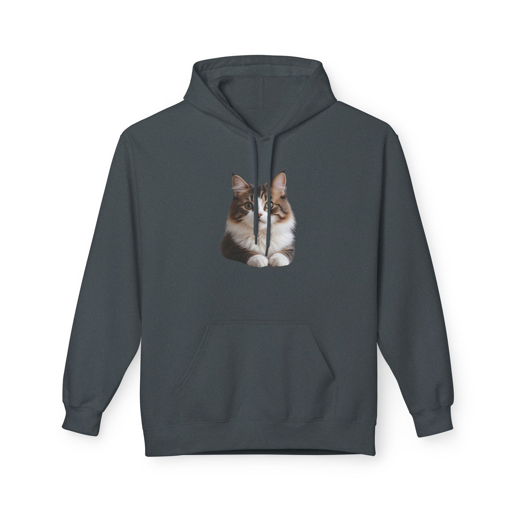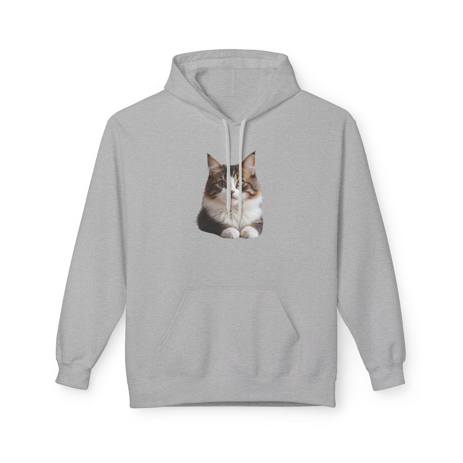 This midweight fleece hoodie brings quiet comfort and a gentle, homey charm to your everyday wardrobe. The soft cotton-blend fabric and relaxed dropped-shoulder silhouette cradle you in warmth while the subtle cat portrait on the chest adds a touch of personality without shouting. Wear it for slow mornings with coffee, cozy evenings on the couch, or when you need a familiar layer for running errands. Thoughtful details — a color-matched lined hood, roomy pouch pocket, and tear-away label — make it feel lived-in from the first wear. Ethically made and OEKO-TEX certified, it’s a comfortable, responsible choice for anyone who wants softness and simple style paired with conscious production.