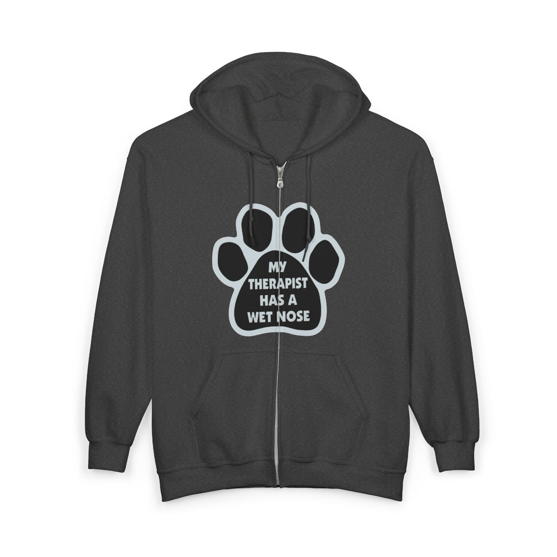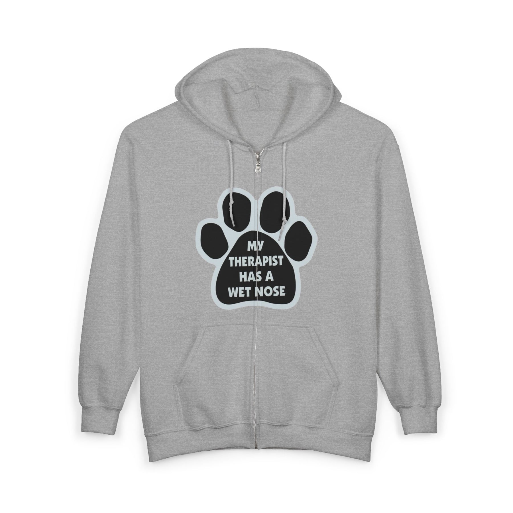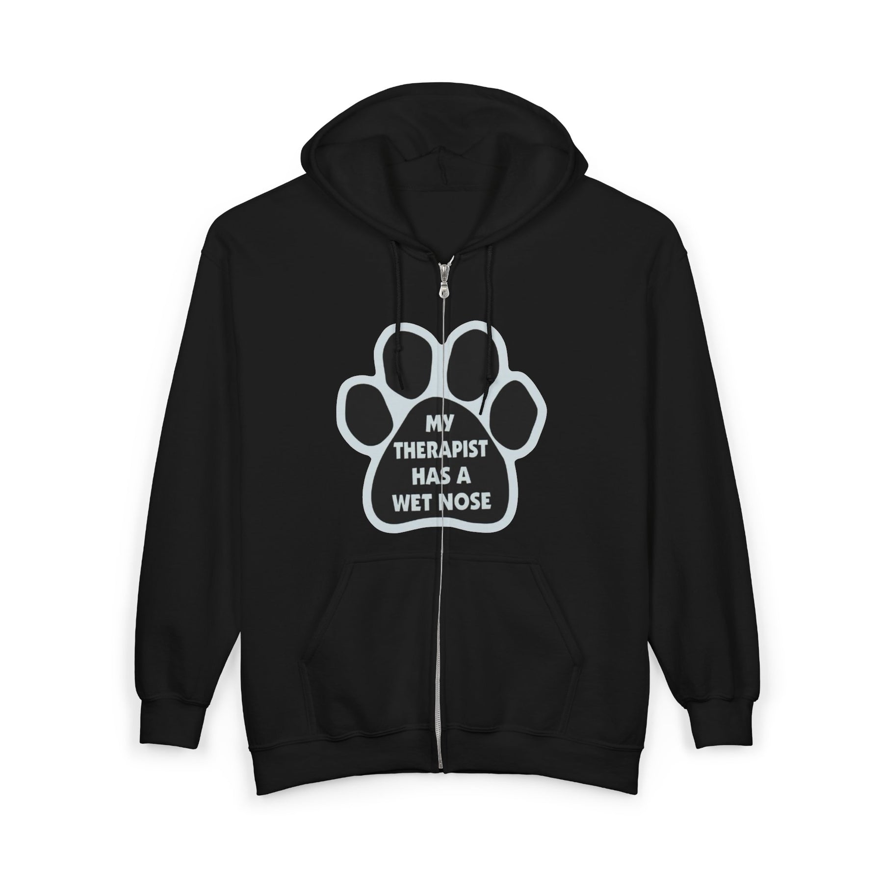 Dog Lover Zip Hoodie — “My Therapist Has a Wet Nose” Paw Print Jacket