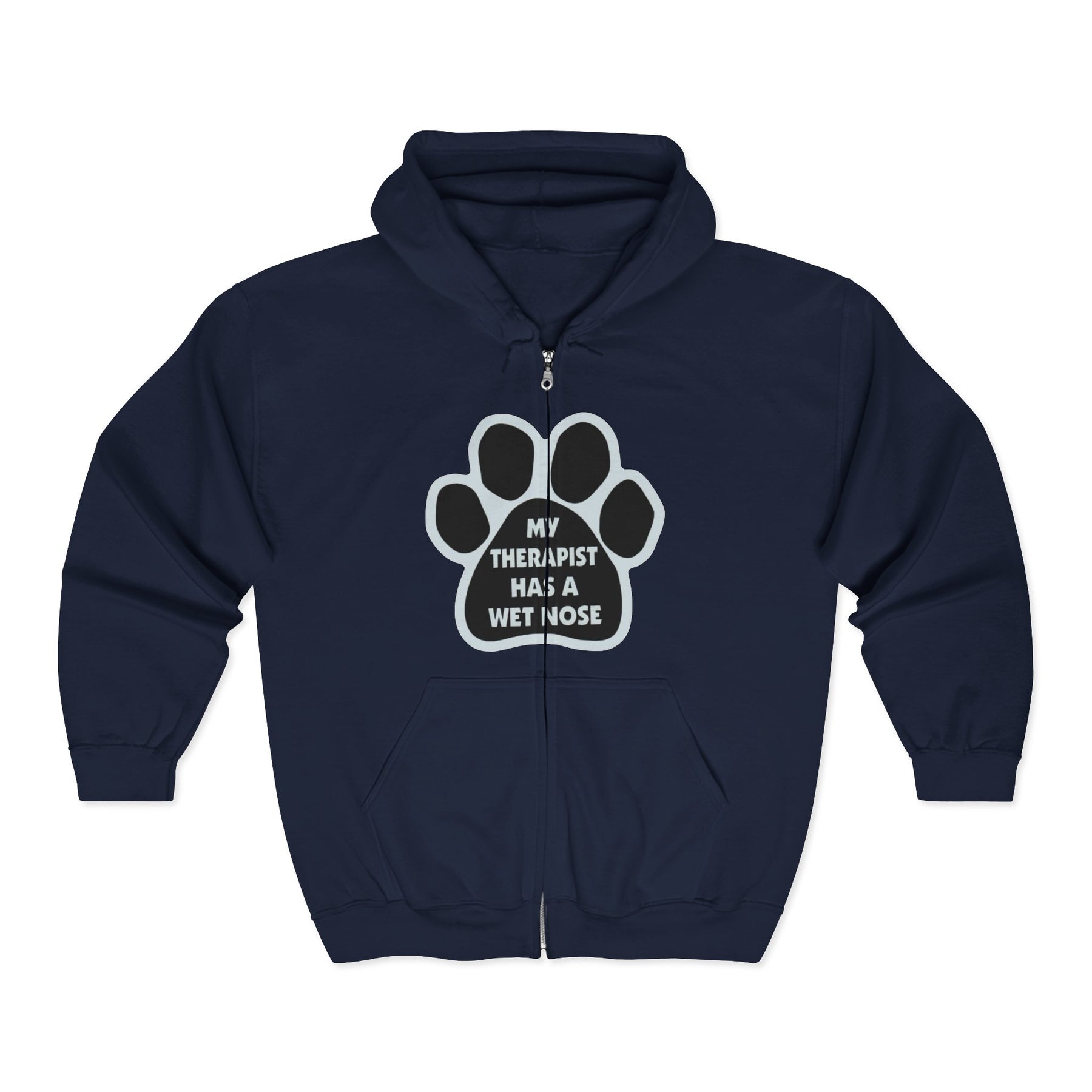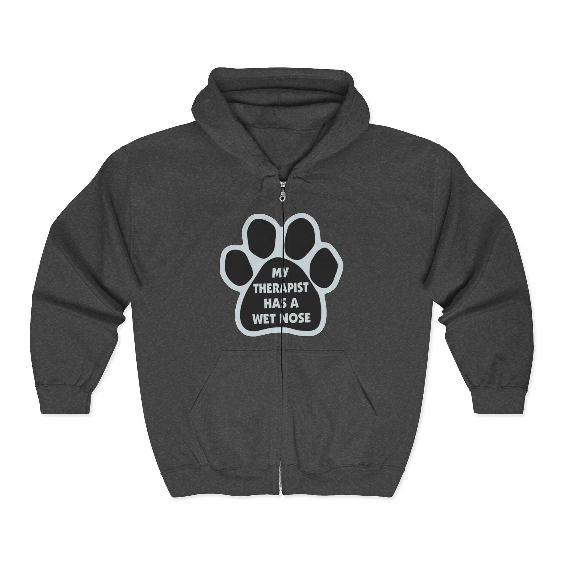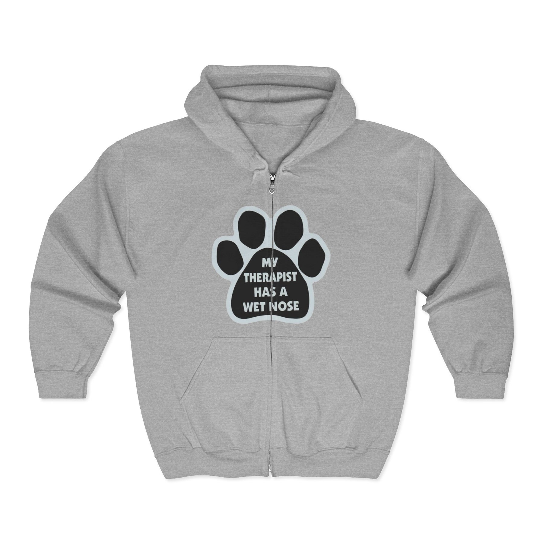 Dog Lover Zip Hoodie — “My Therapist Has a Wet Nose” Paw Print Jacket