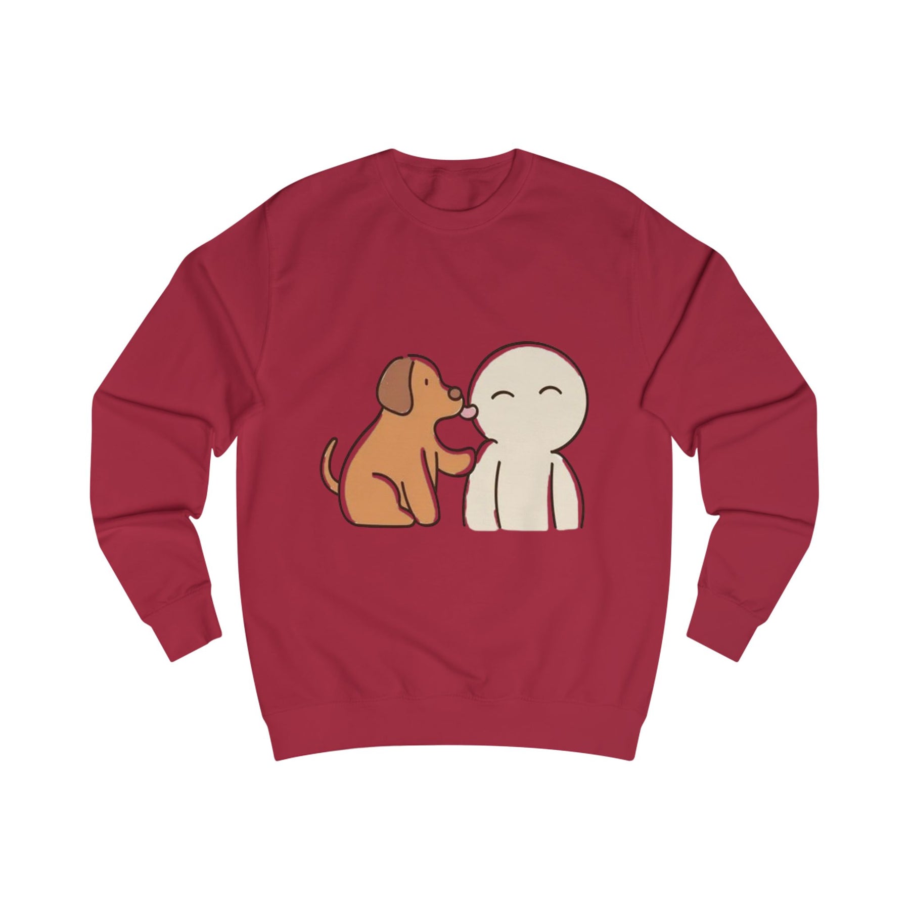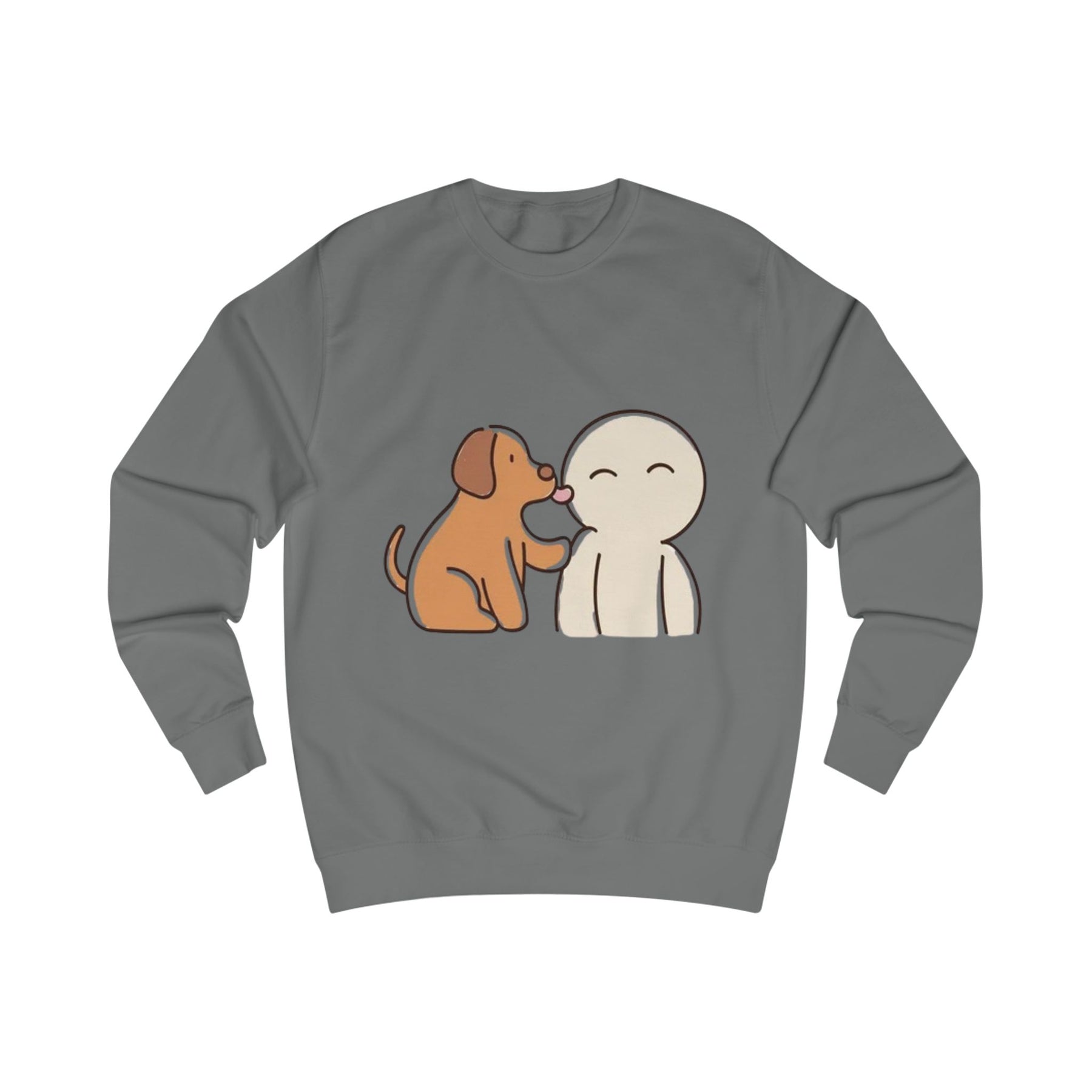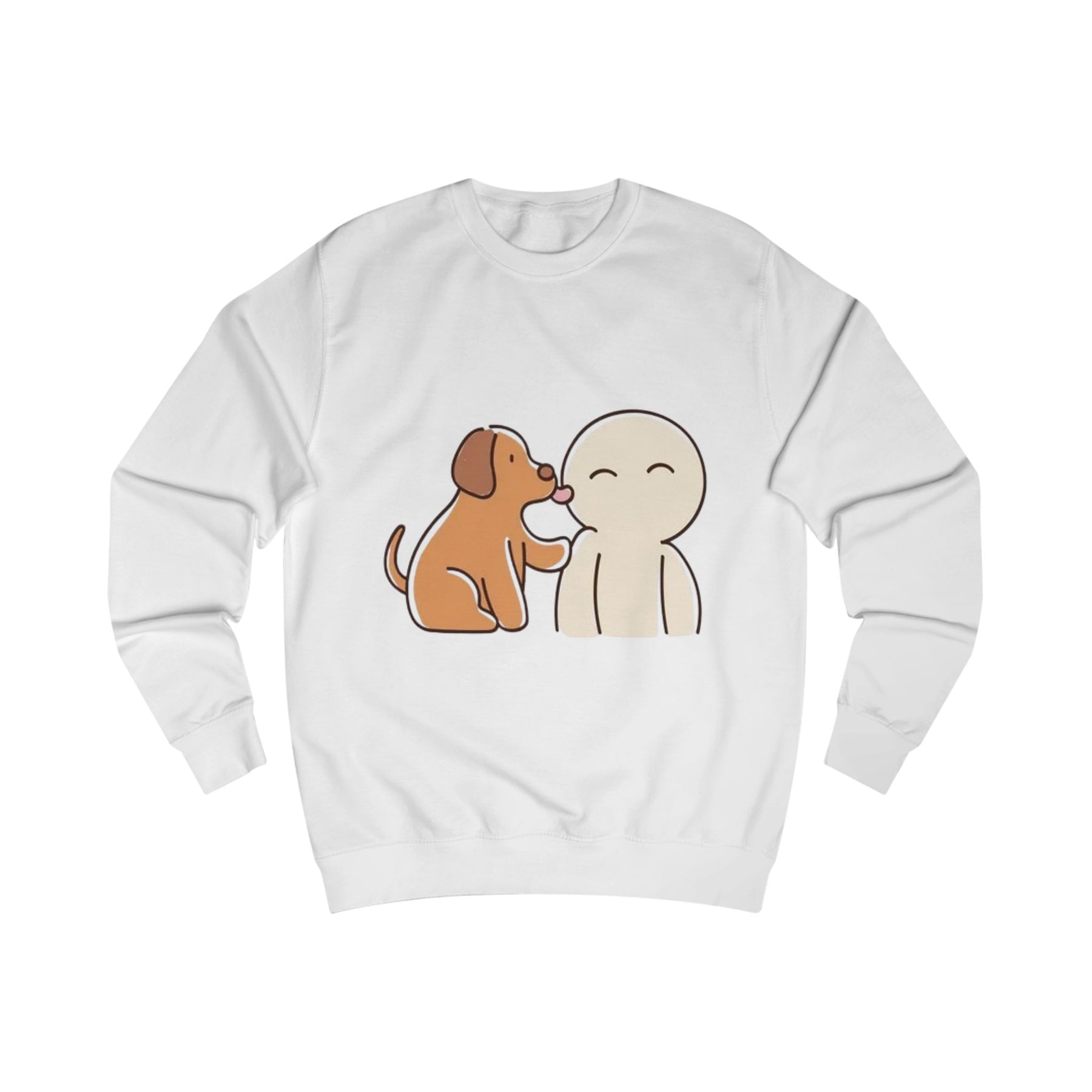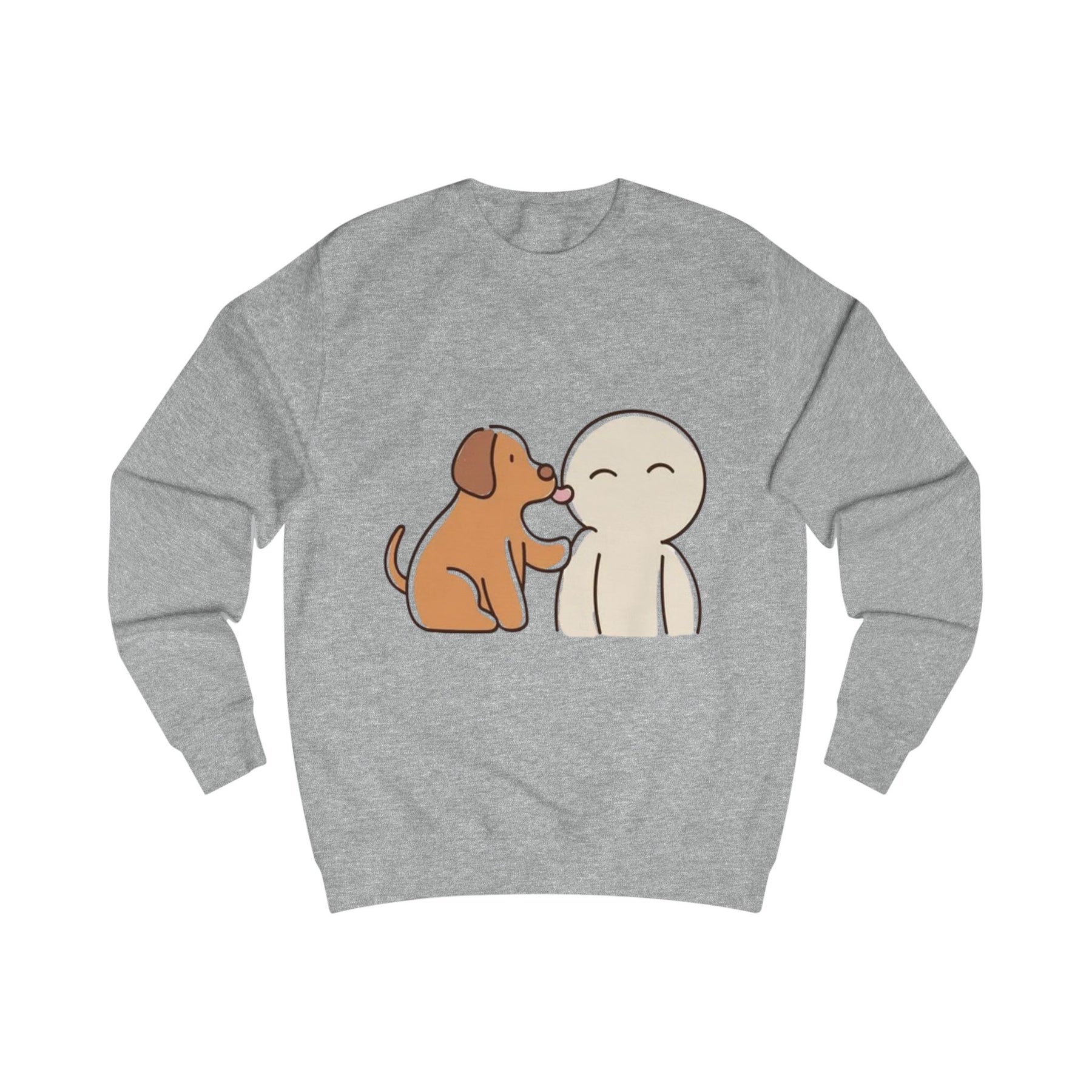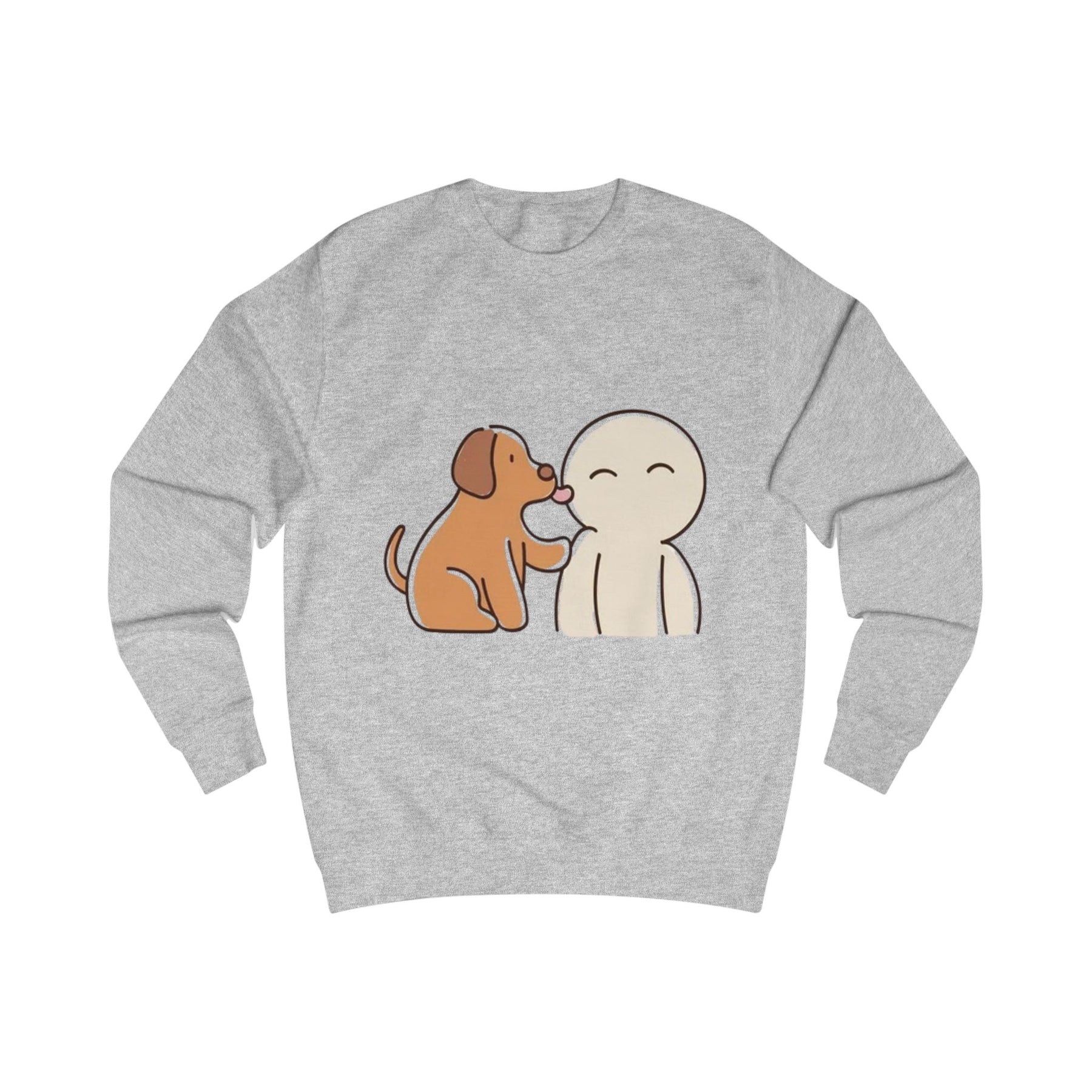 Soft, cozy sweatshirt with a gentle, heartwarming design: a simple cartoon pup giving a tender lick to a smiling figure. The artwork feels intimate and sincere — quiet moments of affection translated into wearable comfort. Medium-heavy fabric and a ribbed collar keep the silhouette structured, while side seams and necktape ensure this sweatshirt keeps its shape wash after wash. Wear it at home on slow mornings, on dog-walking routes, or layered for chilly evenings when you want something that says warmth without shouting. The tear-away label keeps the neckline itch-free, and the cut runs true to size for an easy, relaxed fit.